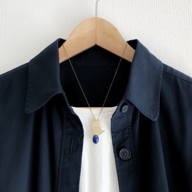 金属は真鍮。石はラピスラズリを使い、一から手作りで制作しております。