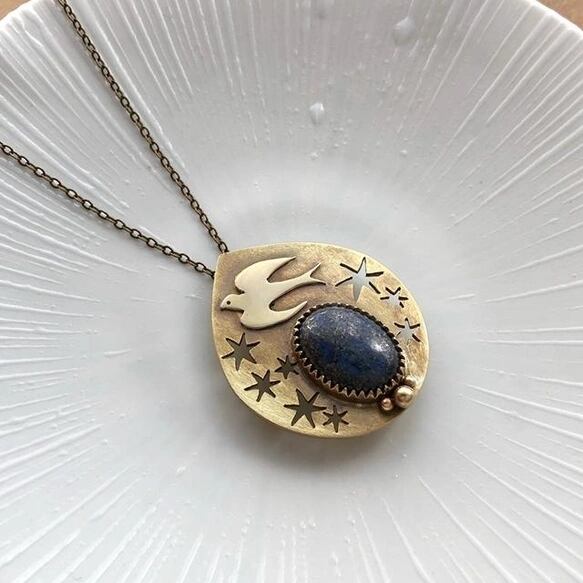 ツバメとラピスラズリのペンダント