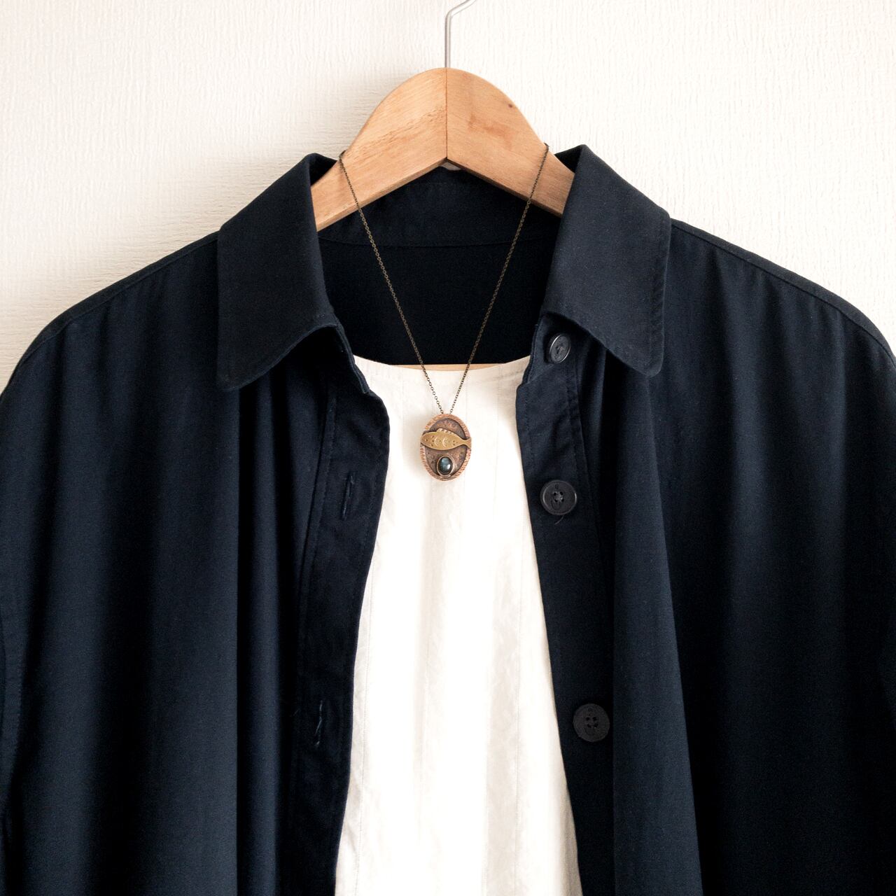 ※ペンダント作品のチェーン、金具部分は古美金メッキ加工が施してあります。真鍮の変色後の色味に合わせた仕様にしております。